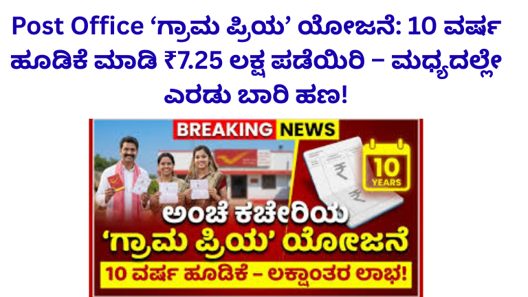 Post Office ‘ಗ್ರಾಮ ಪ್ರಿಯ’ ಯೋಜನೆ: 10 ವರ್ಷ ಹೂಡಿಕೆ ಮಾಡಿ ₹7.25 ಲಕ್ಷ ಪಡೆಯಿರಿ – ಮಧ್ಯದಲ್ಲೇ ಎರಡು ಬಾರಿ ಹಣ!